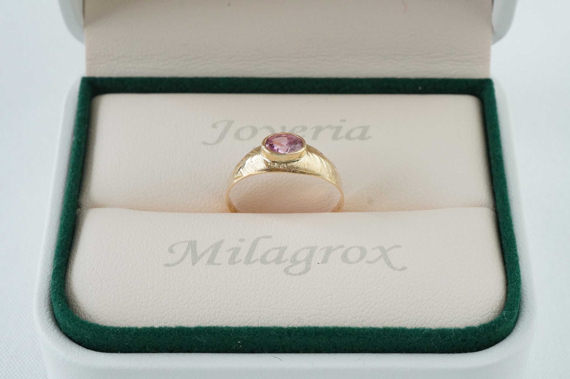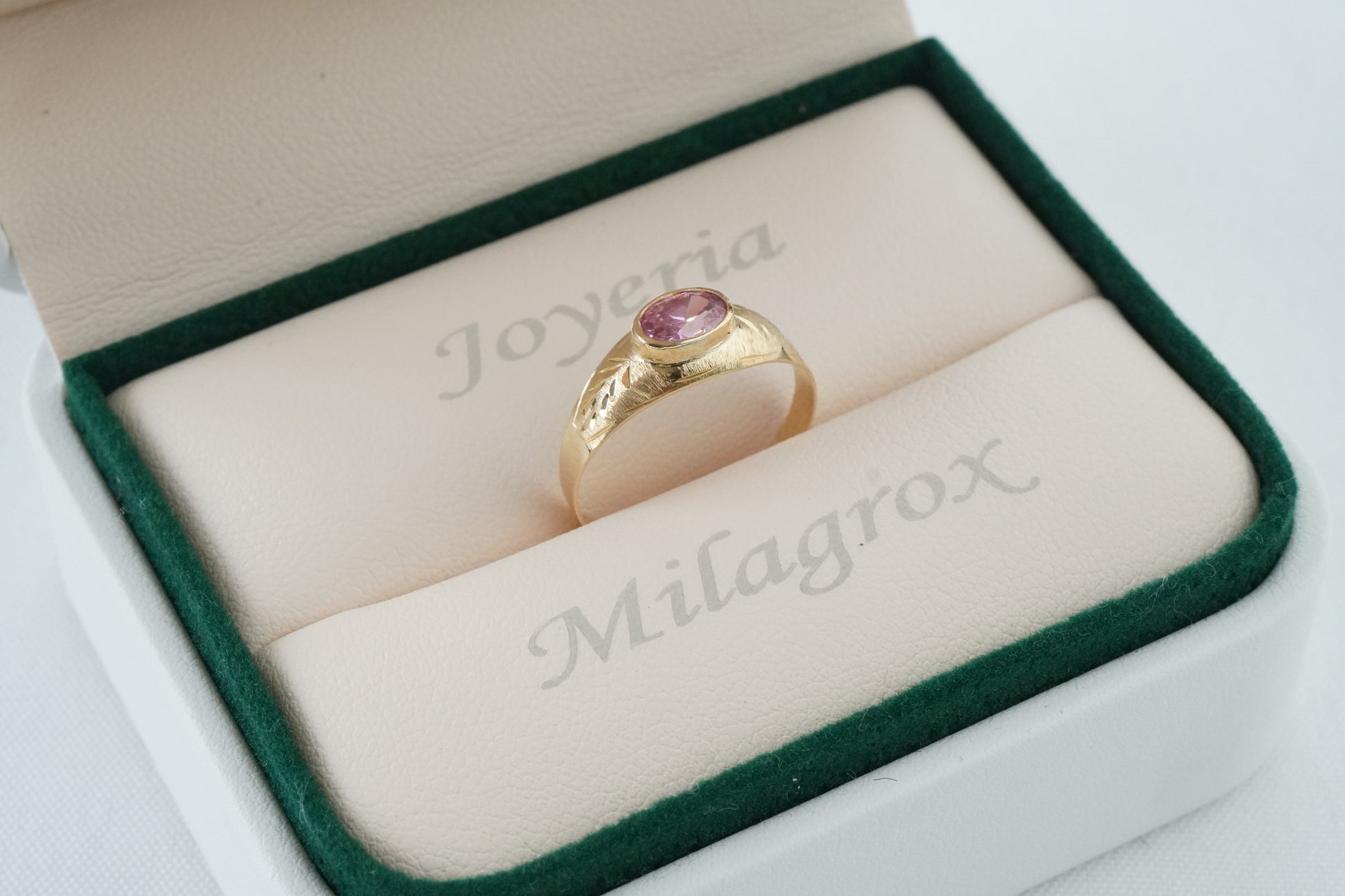 Nombre: Anillo con circon rosado en oro 18 quilates