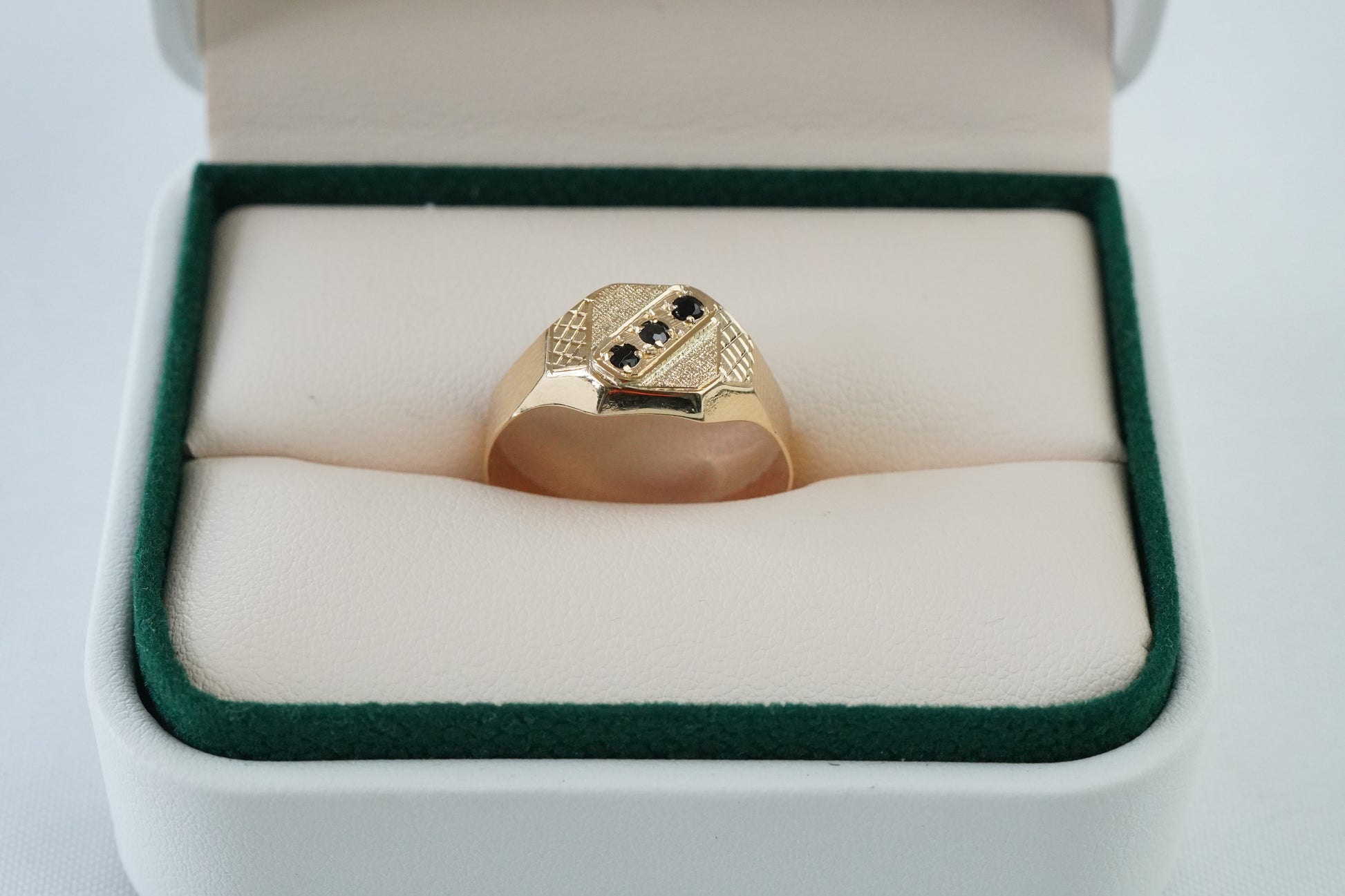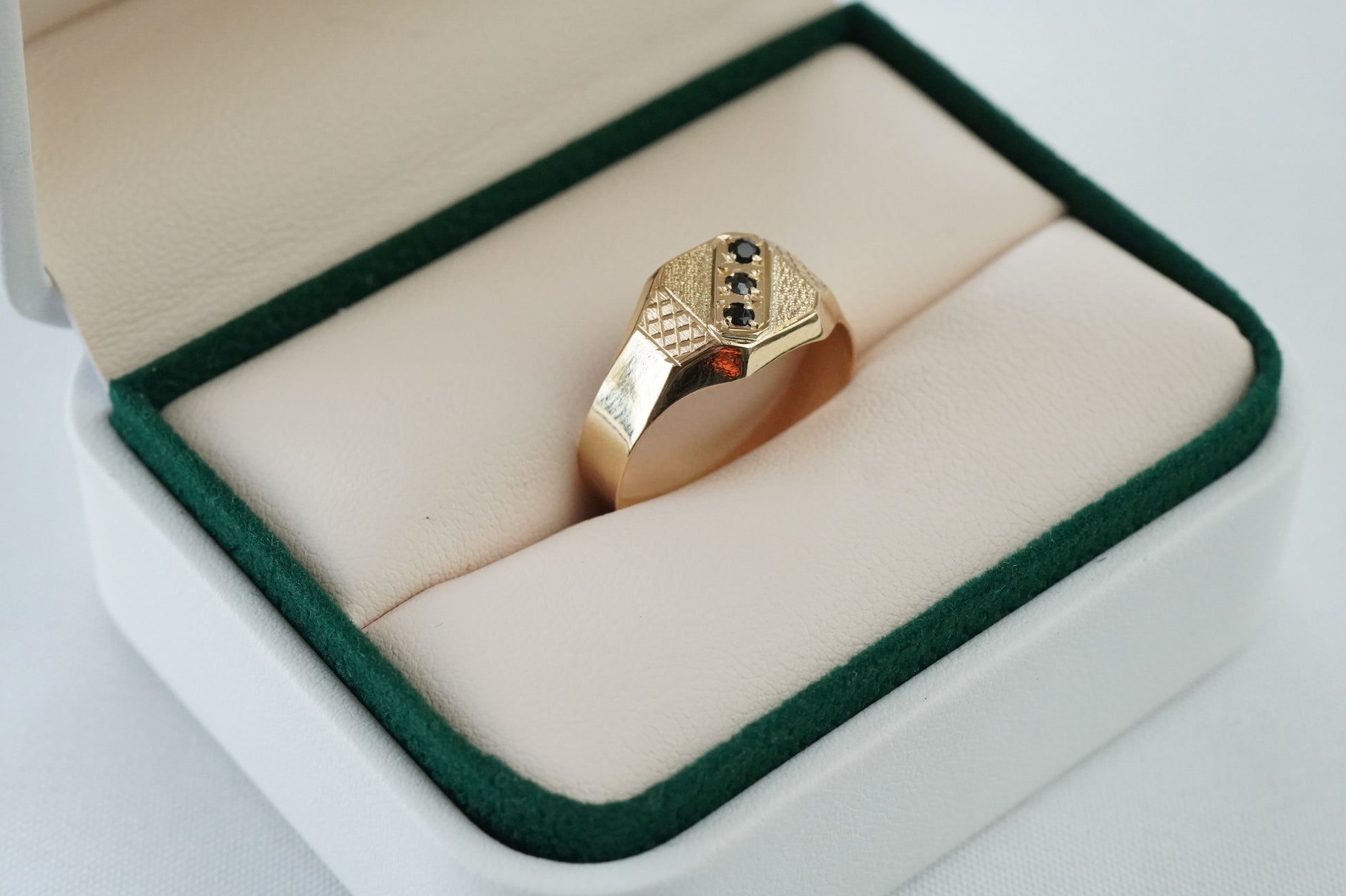 Nombre: Anillo cuadrado con circones negros en oro 18 quilates