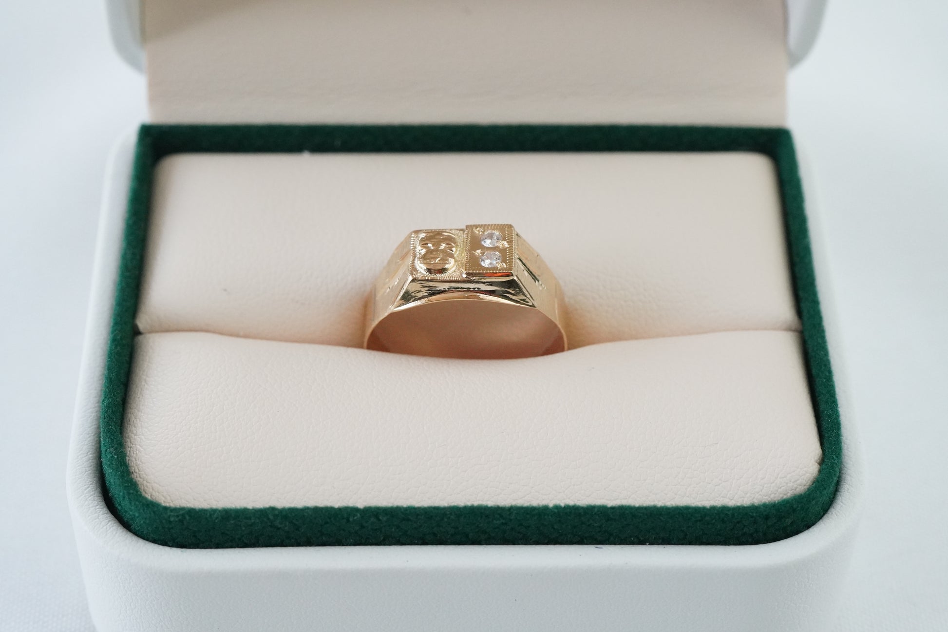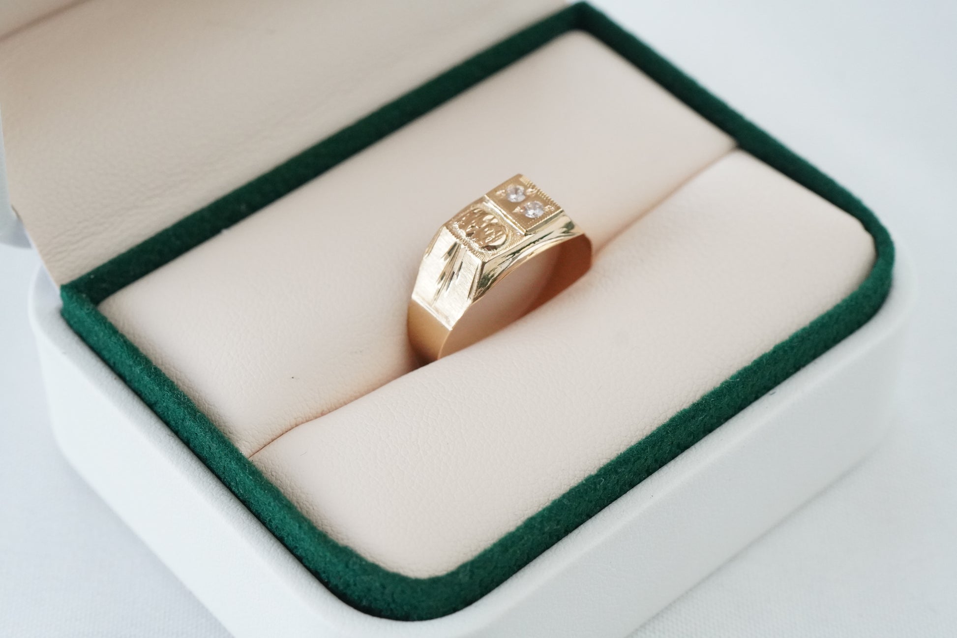 Anillo quimbaya con circones blancos en oro 18 quilates